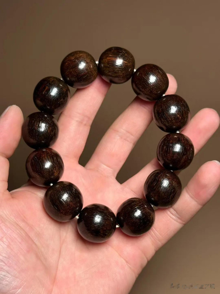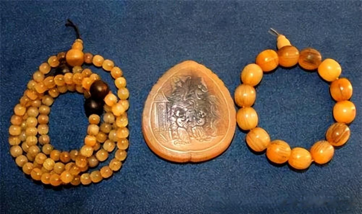 真品老犀角手串的质感也是骗不了人,看似如同蜜糖丸一样的软糯,其实用力掐下去很硬实。