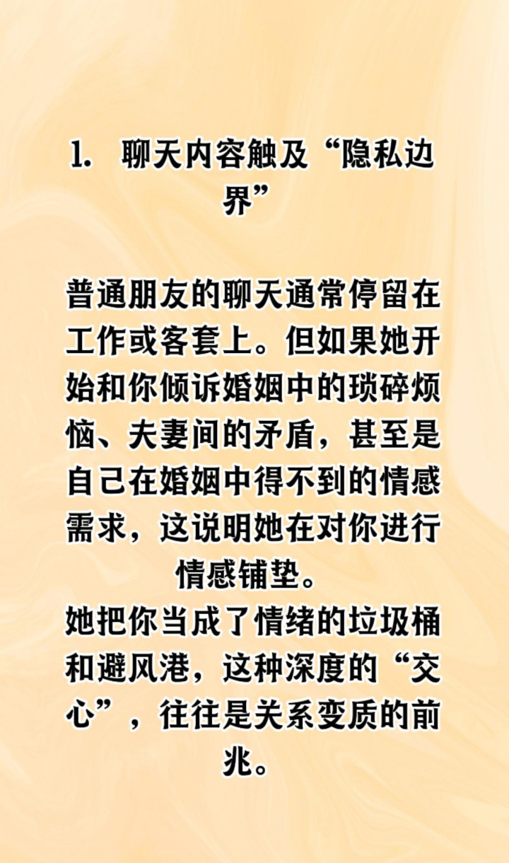最常见的迷惑行为是时间点不对。比如下班后发消息说"突然想到你",或者周末深夜发长语音。对方丈夫可能已经入睡,但这种时机本身就暗示了某种突破常规的意图。