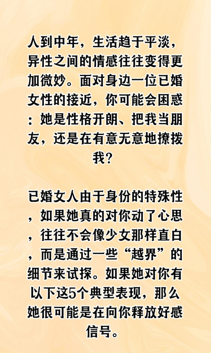 千万别觉得这些离自己远。成年人的情感试探就像在迷宫里玩捉迷藏,你以为的真心可能只是别人练习演技的道具。观察久了会发现,越是已婚女性越擅长用生活琐事包装小心思。