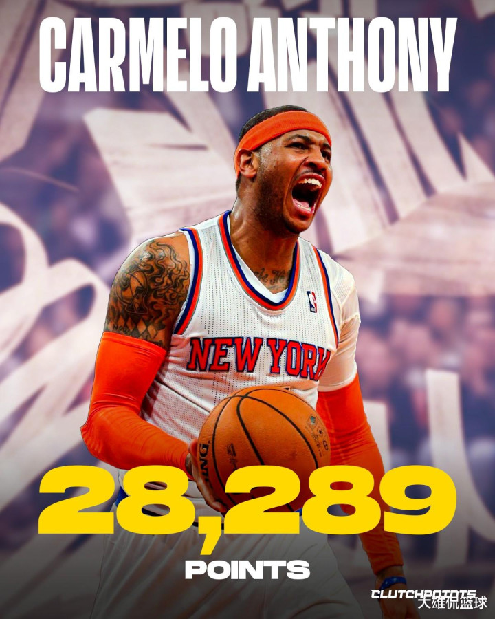 职业生涯一共拿到了28289分,却没有赢得过总冠军。卡梅隆安东尼职业生涯效力过掘金、尼克斯、雷霆、火箭、开拓者、湖人,可惜职业生涯末期有点惨淡,颠沛流离。不过,他可是NBA历史上最伟大的单打球员之一。