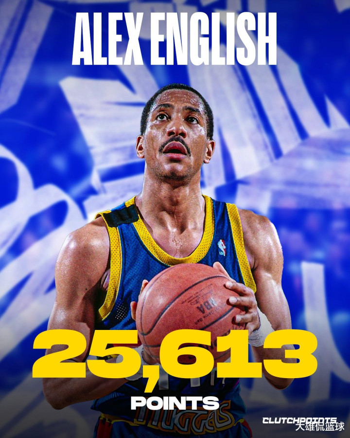 职业生涯一共拿到了25613分,却没有赢得过总冠军。英格利什职业生涯效力过雄鹿、步行者、掘金和老鹰队,他的大部分职业生涯都是在掘金队度过的。