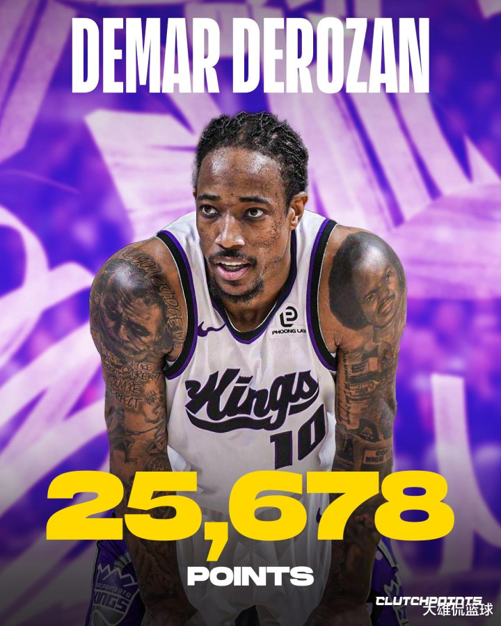 职业生涯一共拿到了25678分,却没有赢得过总冠军。德罗赞职业生涯效力过猛龙、马刺、公牛和国王队。他没有进过总决赛,但是并不影响他是一名出色的得分手,德罗赞是现役为数不多,还拥有NBA最传统单打能力的球星。