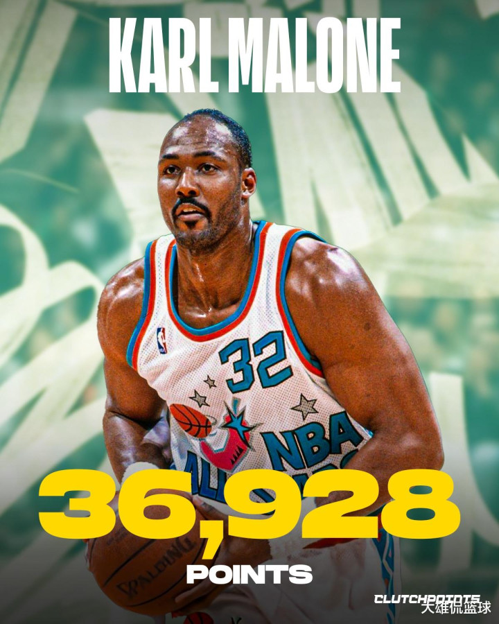 职业生涯一共拿到了36928分,却没有赢得过总冠军。卡尔马龙职业生涯在效力犹他爵士和洛杉矶湖人的时候绝伦,都进入过总决赛,可惜都没有拿到过总冠军。他是NBA历史上最伟大的大前锋之一,若有总冠军的加持,他绝对是历史第一大前锋。