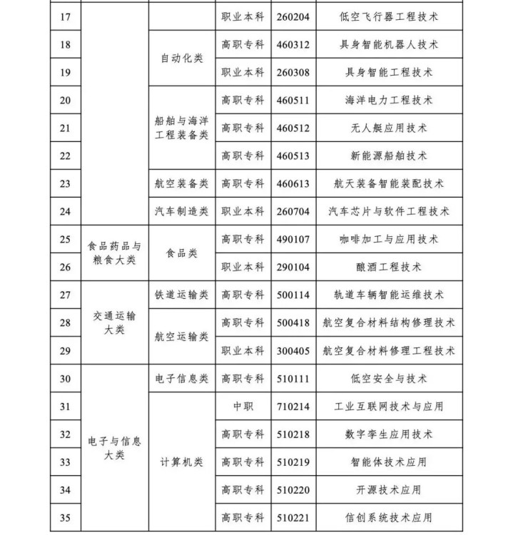 此外,装备制造、电子与信息也是此次增补数量较多的专业,包含:具身智能机器人技术、具身智能工程技术、航天装备智能装配技术、数字孪生应用技术、智能体技术应用等专业。