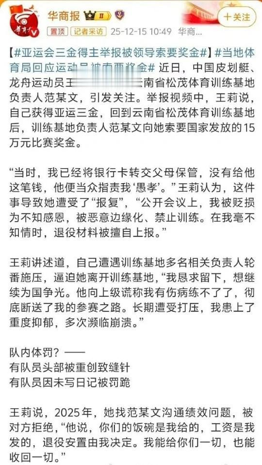 不同于以往很多类似事件的“忍气吞声”,这位00后运动员选择了站出来,硬刚到底。而监管部门也反应迅速,并没有急着“捂盖子”,而是直接介入调查。