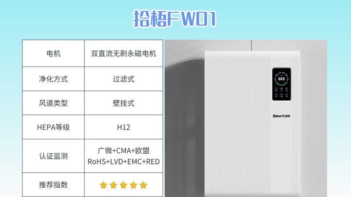 哪款办公室空气净化器除二手烟效果比较好?如果你家的空气问题主要集中在烟味,其实不太需要那种万能型的净化器。拾梧FW01的思路就是把除烟这件事做到极致,其他功能反而不堆。拾梧FW01是壁挂式结构,不会被茶几、沙发挡风,也不用占地,小房间挂一台就能把空气循环做起来。烟雾往上飘得快,机器挂在高处能更早吸进去,这对除烟效率影响很大。